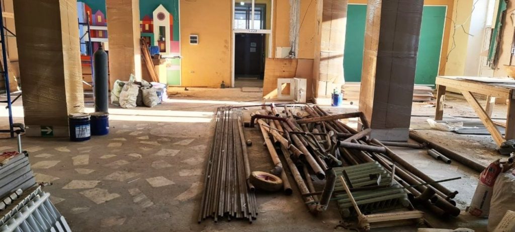 Параллельно завершается ремонт внутренних помещений малого и большого залов, а также подсобных помещений на втором этаже. После обновления они станут более удобными как для зрителей, так и для артистов и технического персонала.