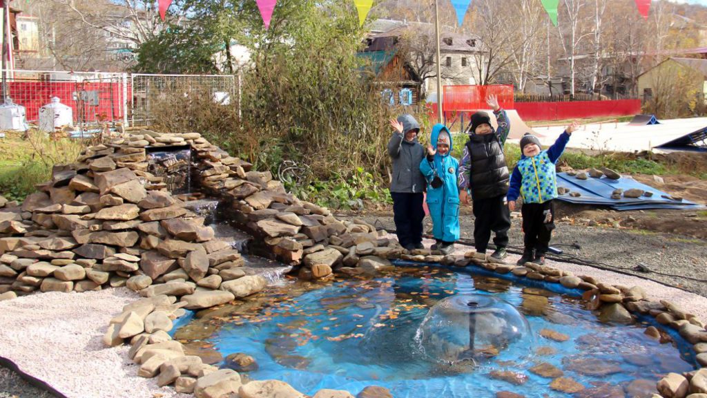 В городе Облучье преобразился двор по улице Кузнечная, 11. Здесь появились уютные скамейки, уличные фонари. Сердцем пространства стал фонтан с подсветкой и водопадом, выложенный из камня.
