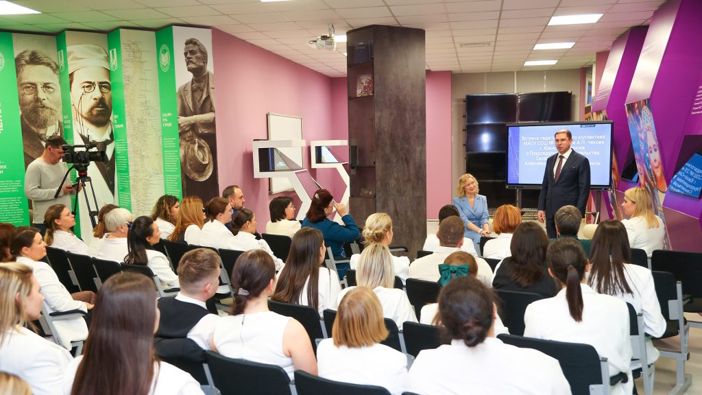 Председатель правительства Сахалинской области Алексей Белик встретился с педагогическим коллективом школы № 25 в жилом комплексе «Горизонт» Южно-Сахалинска, чтобы обсудить планы дальнейшего развития учреждения, открытого в День знаний 2025 года.