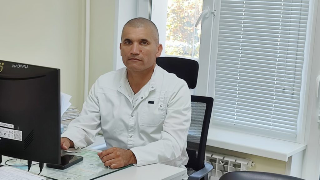 Ветеран СВО Сайдмурод Хужаназаров стал участником программы «Земский доктор», которая помогла ему адаптироваться к мирной жизни. в зоне боевых действий мужчина служил врачом батальонного госпиталя, а сейчас он оказывает медицинскую помощь жителям Пожарского района.