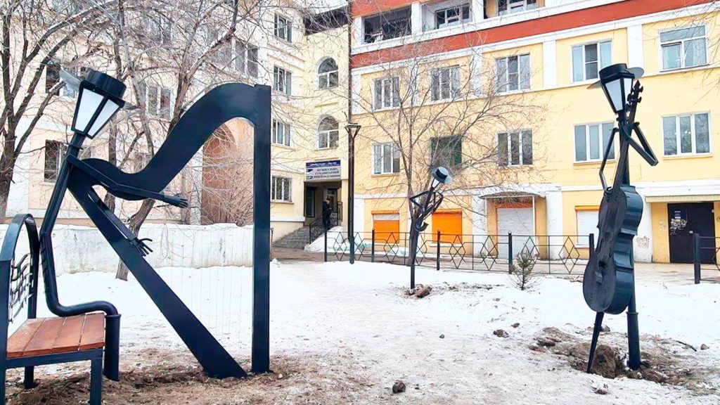 Сквер «Три медведя» в Железнодорожном районе Улан-Удэ украсили необычные фонари в виде музыкантов. Они завершили обновление общественного пространства, в котором ранее была установлена новая скульптурная композиция и высажены 30 хвойных деревьев.
