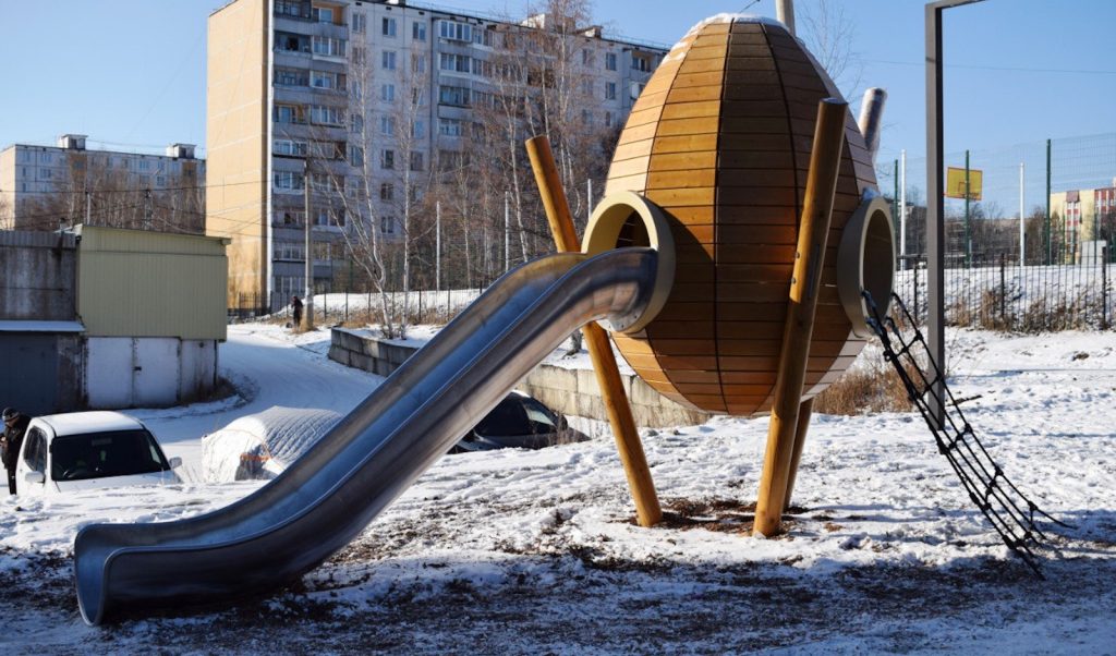 В районе сопки, где заканчивается улица Школьная, обустроили прогулочные тропы, смотровые площадки и зоны отдыха. для детей создан игровой городок, а вершину сопки украсил архитектурный павильон с эффектной подсветкой, ставший новой визуальной точкой притяжения.