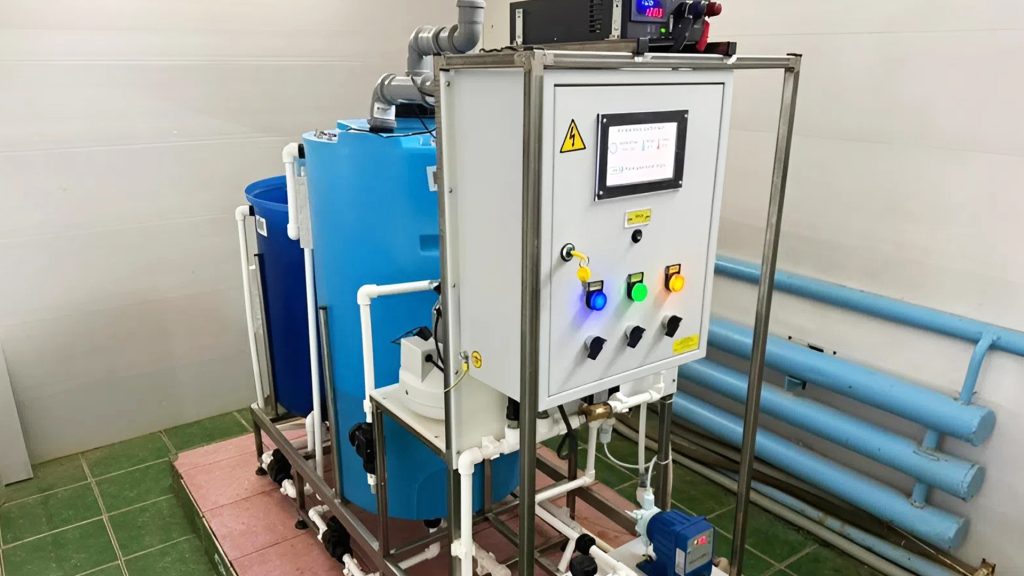 Отметим, что установка помогает полностью отказаться от использования стандартных реактивов. Хлор и другие участвующие в процессе очистки активные вещества извлекаются непосредственно из обрабатываемой воды. Примечательно, что установка прослужит долго, так как в её состав включено оборудование для умягчения и обезжелезивания исходной воды.
