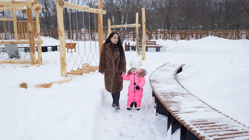 «Мы приходим сюда с дочкой практически каждый вечер — сразу после работы. Дышим свежим воздухом, катаемся на качелях. Здесь красиво, уютно, рядом река», — делится местная жительница Анна Доможакова.