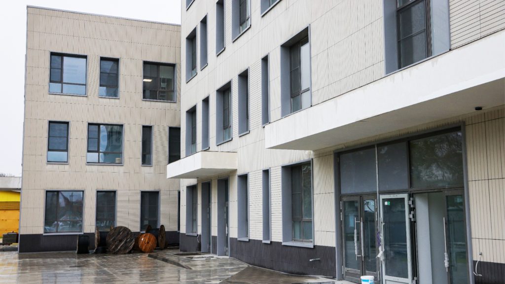 Сейчас на трёх этажах поликлиники завершена внутренняя отделка и устройство инженерных сетей. Благоустроена прилегающая территория. Стартовала работа по установке оборудования, все оно уже находится на объекте.
