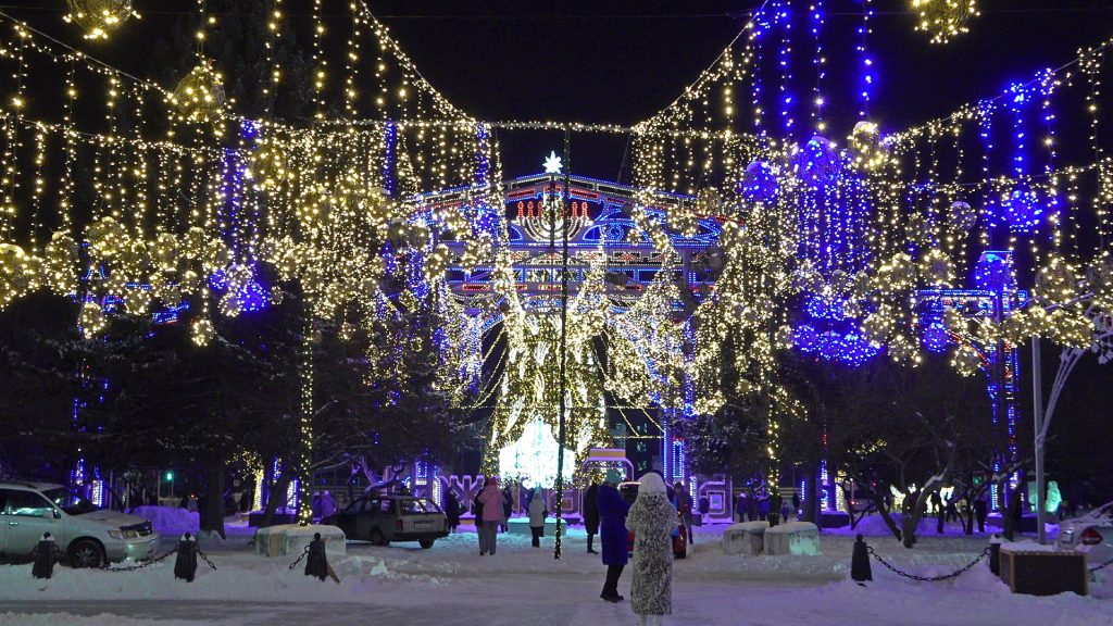 Предпраздничная эстафета стартовала сразу в трёх муниципальных образованиях Еврейской автономной области. Новогодние ёлки зажгли накануне в Биробиджане, Облучье и Амурзете.