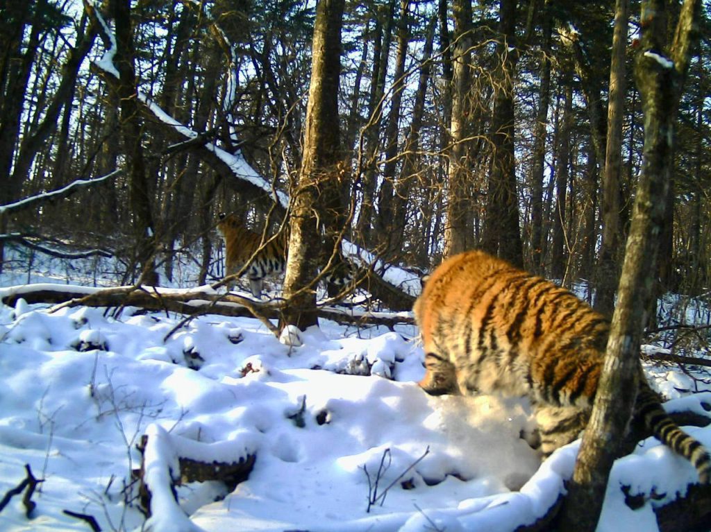 Даже тигрята знают, что отвлёкся на секунду — и вот ты уже один на один с бескрайним лесом. Приходится догонять своих вприпрыжку по глубокому снегу.