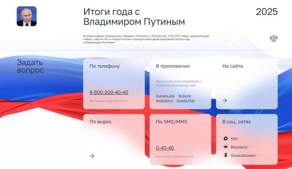 Глава государства в прямом эфире подведёт итоги уходящего года и ответит на вопросы. и ваш вопрос может прозвучать!