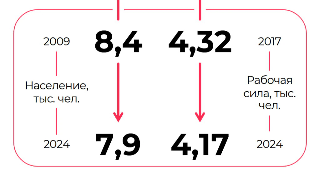Численность жителей в ДФО продолжает сокращаться (- 543 тыс. чел. с 2009 г.). Вследствие этого уменьшается и рабочая сила (- 147 тыс. чел с 2017 г.), ограничивая потенциал экономического развития.