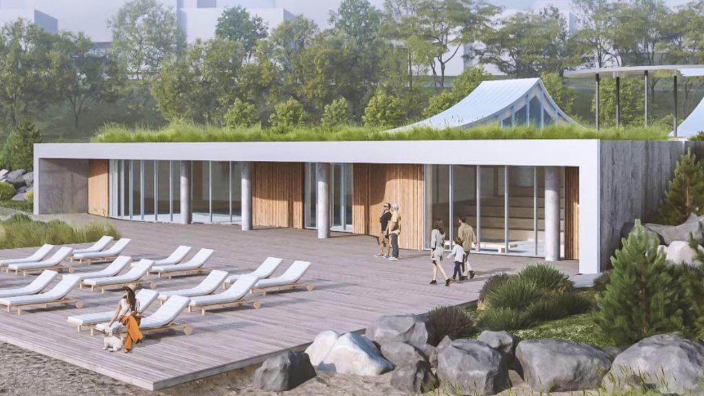 Ключевой особенностью станут парные в формате амфитеатра с панорамным термостеклом, ориентированным на морскую акваторию. Такой формат объединит банный ритуал и созерцание природы, создавая уникальный опыт для посетителей. для круглогодичного использования предусмотрят подогреваемые пешеходные дорожки к берегу, а в прибрежной зоне появится солярий со стационарными лежаками, доступными всем отдыхающим.